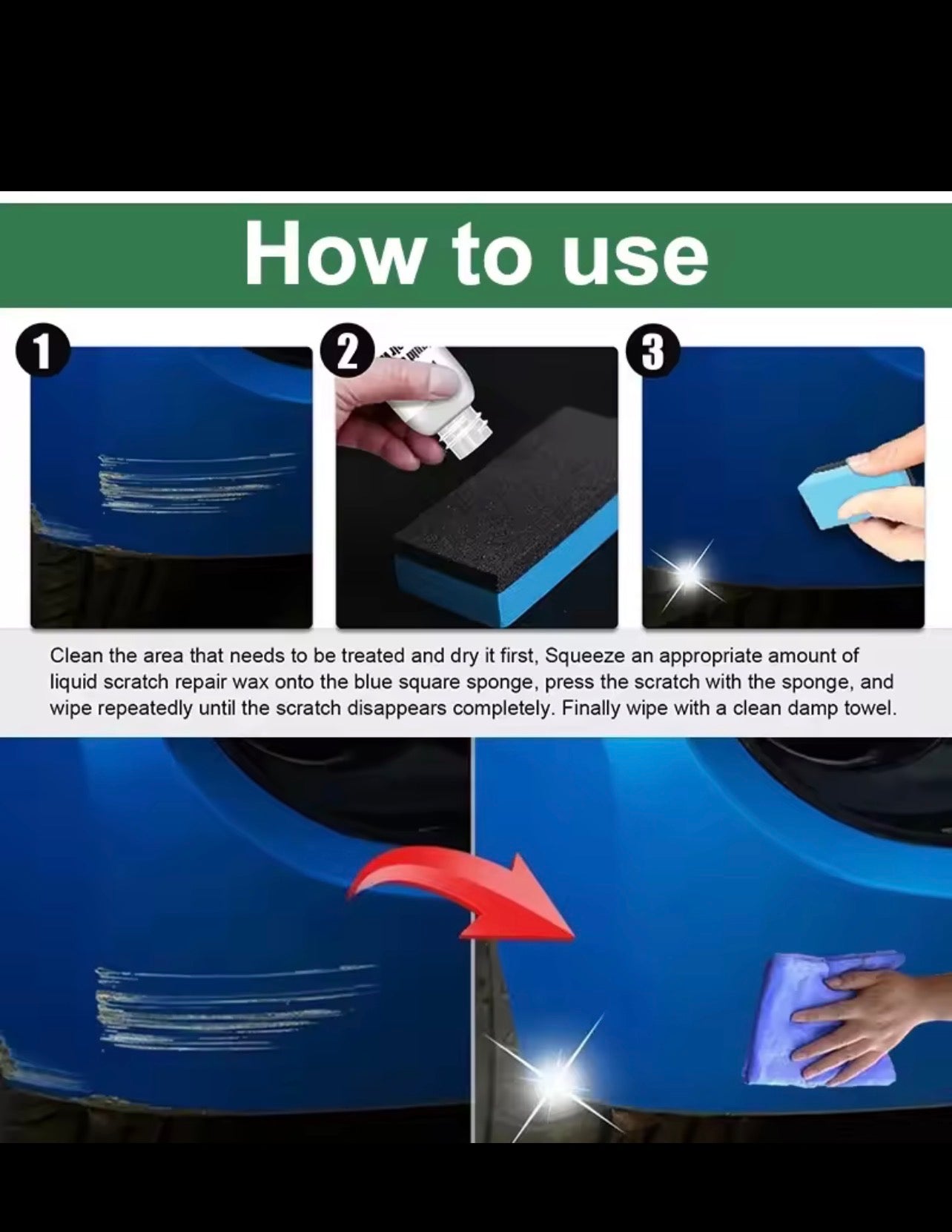 - ✅ Résultat rapide – Réduit l'apparence des rayures en quelques minutes